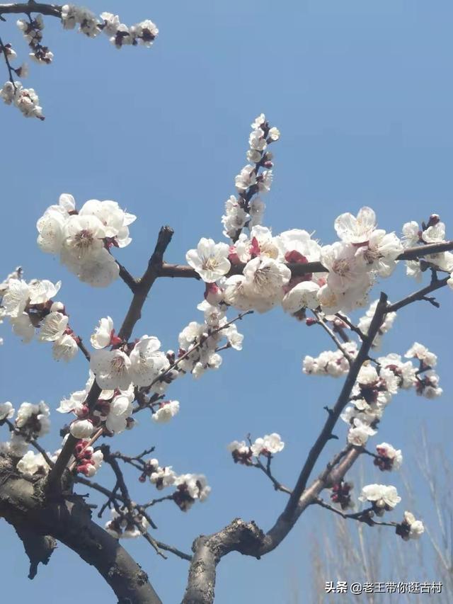 早春一片甜眠雪化为杏树枝上白 张山子黄邱山套百亩杏花初绽放 踏青